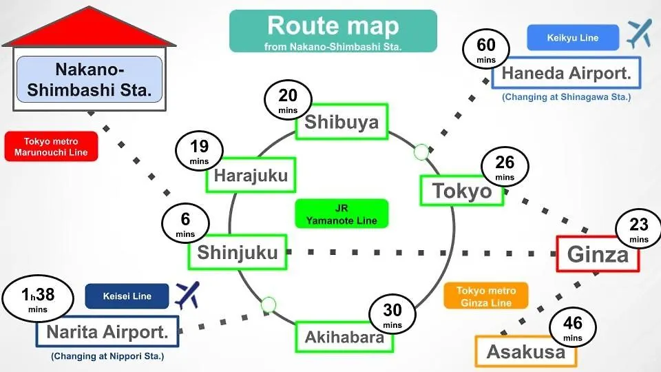 この45m²のアパートは徒歩5分で 中野新橋地下鉄駅の近くにあります。